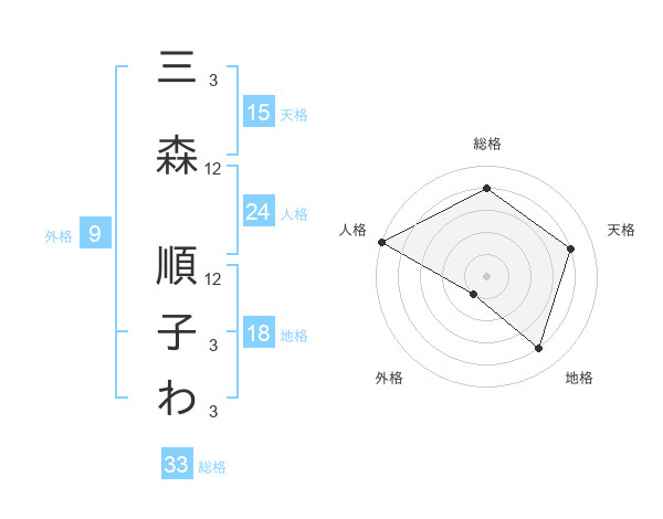 三森 順子わさんの総格は33画の4点!