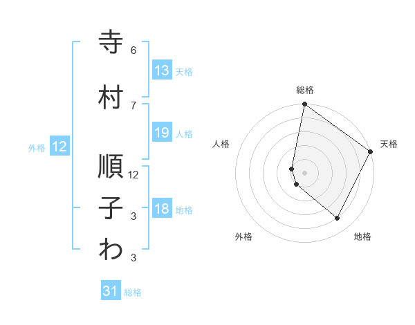 寺村 順子わさんを姓名の画数から五運を鑑定