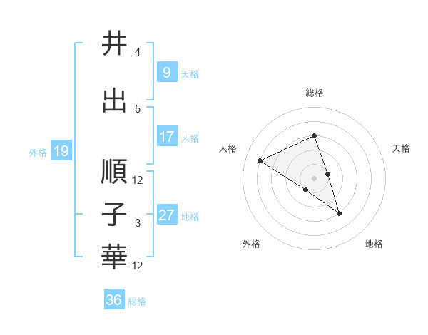 井出 順子華さんの天格は9画の1点!