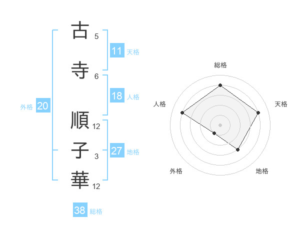 古寺 順子華さんの総格は38画の4点!