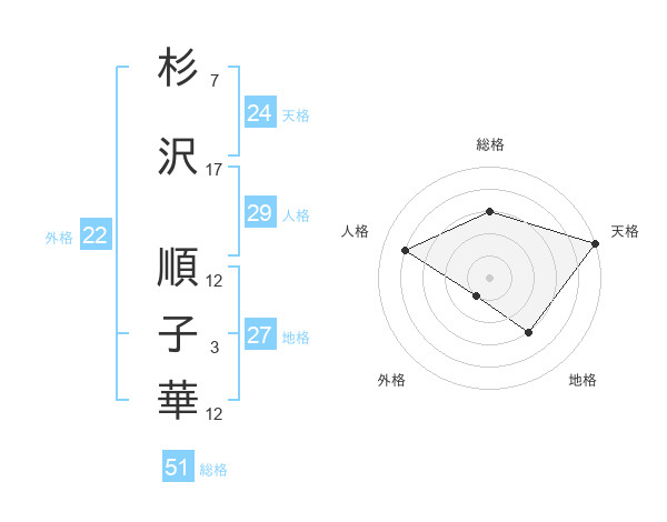 杉沢 順子華さんを姓名の画数から五運を鑑定