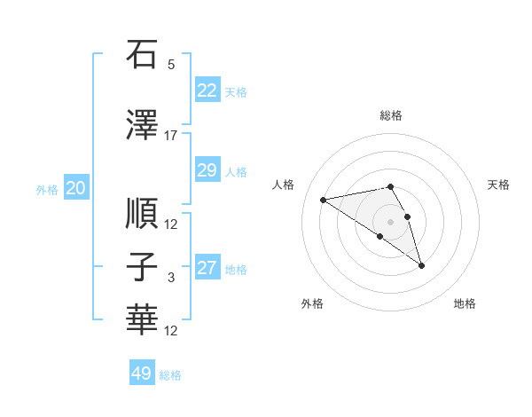 石澤 順子華さんを姓名の画数から五運を鑑定