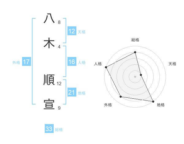 八木 順宣さんの総格は33画の4点!