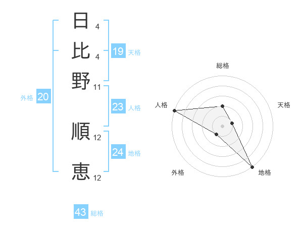 日比野 順恵さんを姓名の画数から五運を鑑定