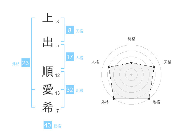 上出 順愛希さんを姓名の画数から五運を鑑定