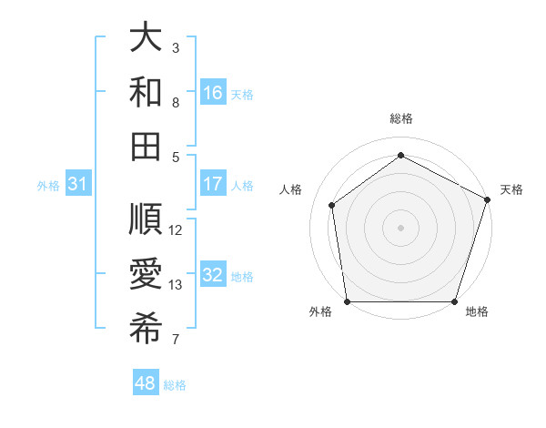 大和田 順愛希さんを姓名の画数から五運を鑑定