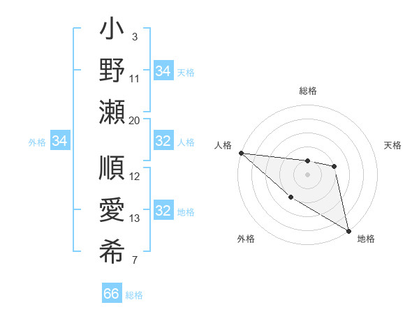 小野瀬 順愛希さんの天格は34画の2点