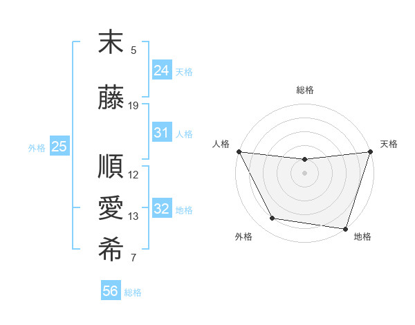 末藤 順愛希さんの天格は24画の5点!