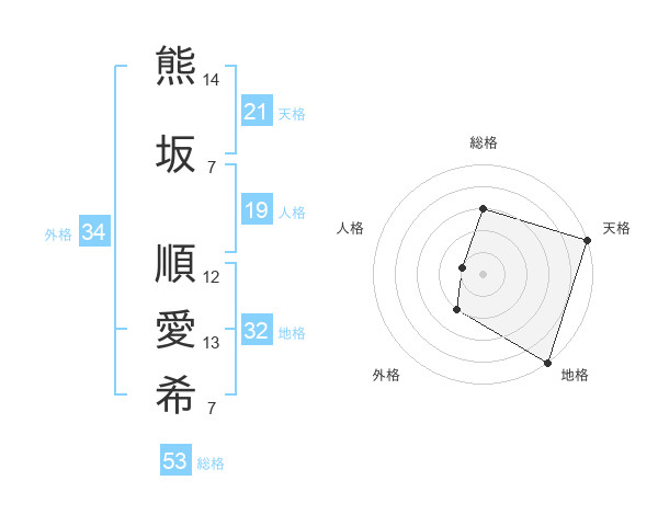 熊坂 順愛希さんの天格は21画の5点!