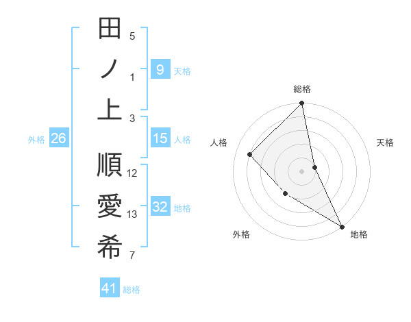 田ノ上 順愛希さんを姓名の画数から五運を鑑定