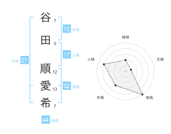 谷田 順愛希さんを姓名の画数から五運を鑑定