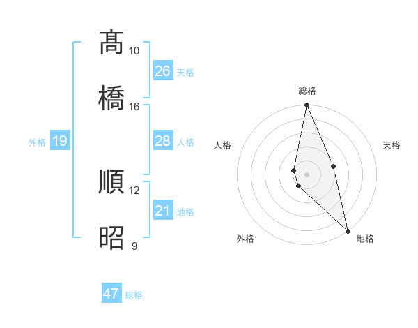 髙橋 順昭さんの総格は47画の5点!