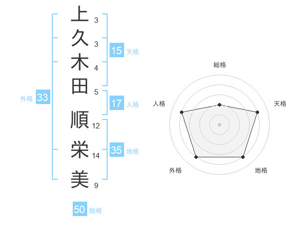 上久木田 順栄美さんを姓名の画数から五運を鑑定