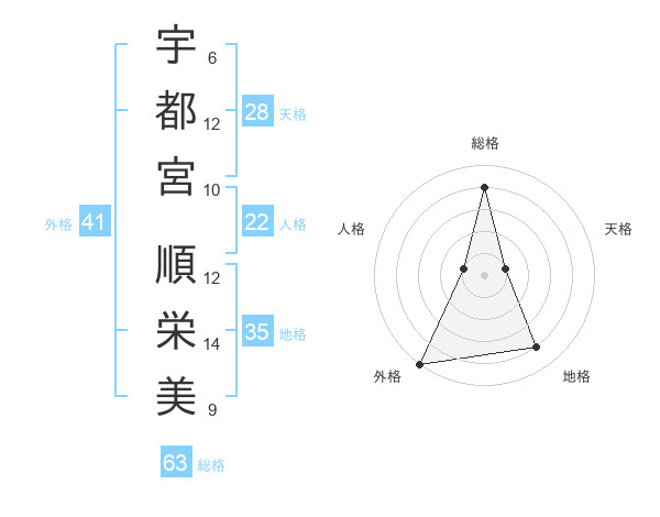宇都宮 順栄美さんを姓名の画数から五運を鑑定