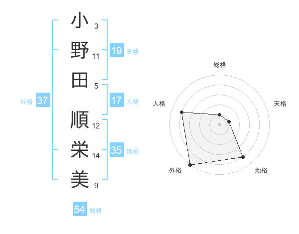 小野田 順栄美さんを姓名の画数から五運を鑑定