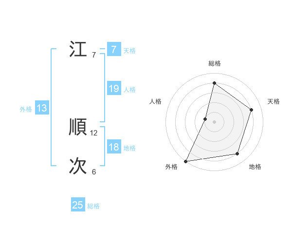 江 順次さんの外格は13画の5点!