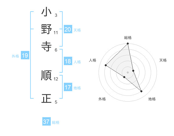 小野寺 順正さんの総格は37画の5点!
