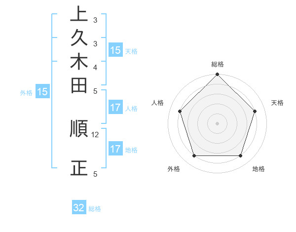 上久木田 順正さんの総格は32画の5点!