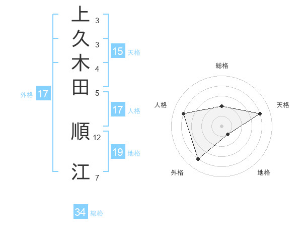 上久木田 順江さんを姓名の画数から五運を鑑定