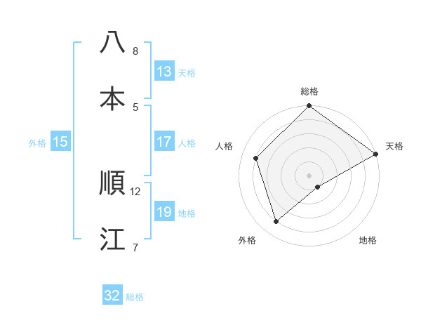 八本 順江さんの天格は13画の5点!