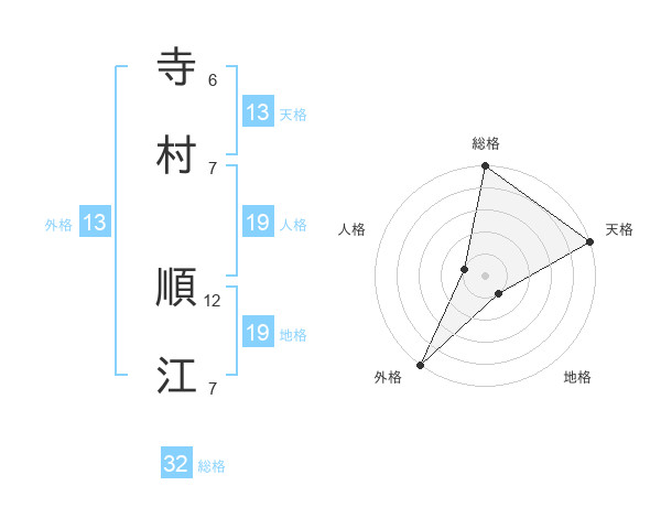 寺村 順江さんの天格は13画の5点!