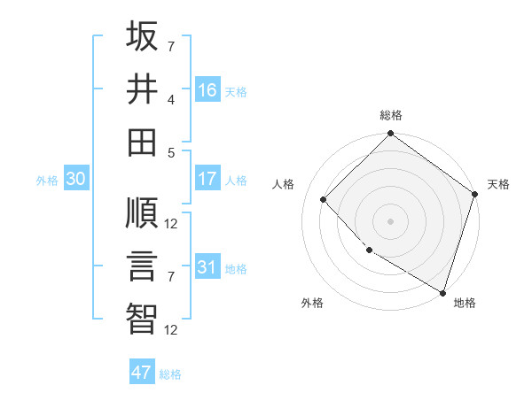 坂井田 順言智さんを姓名の画数から五運を鑑定