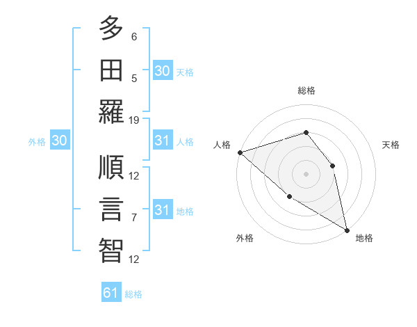 多田羅 順言智さんを姓名の画数から五運を鑑定