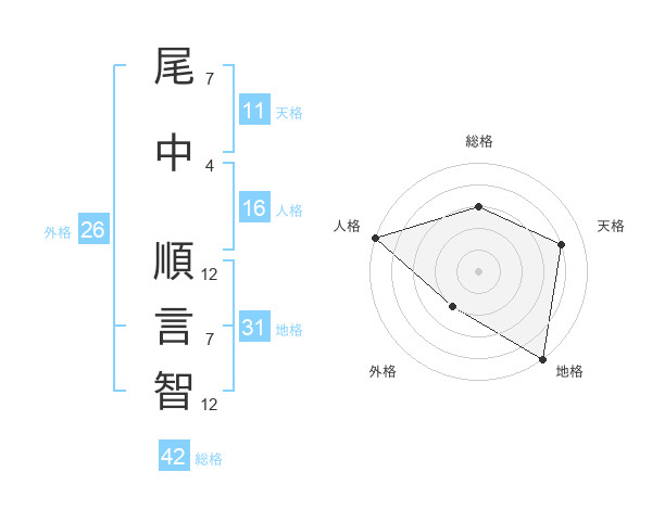 尾中 順言智さんの総格は42画の3点!