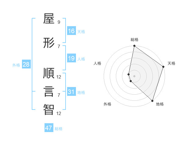 屋形 順言智さんを姓名の画数から五運を鑑定