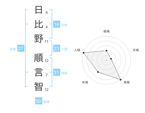 日比野 順言智さんを姓名の画数から五運を鑑定