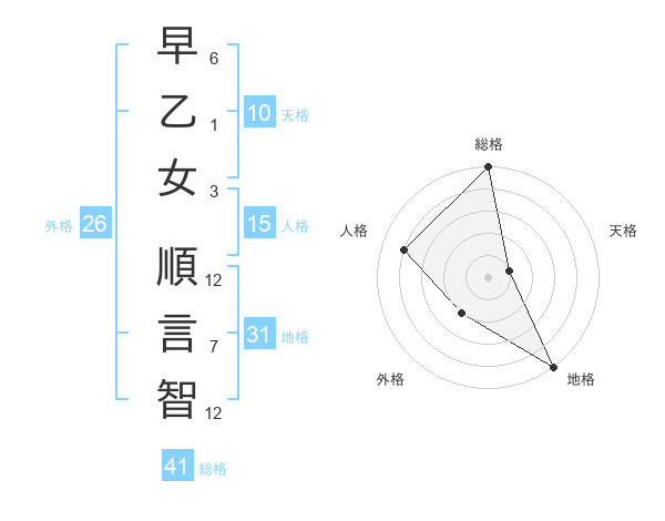 早乙女 順言智さんを姓名の画数から五運を鑑定