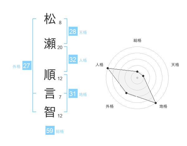 松瀬 順言智さんを姓名の画数から五運を鑑定