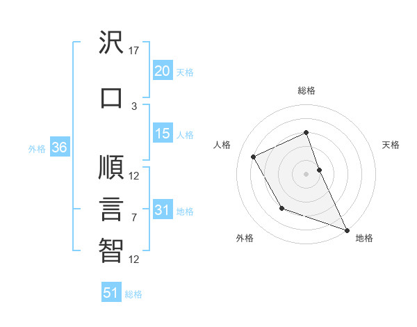 沢口 順言智さんを姓名の画数から五運を鑑定