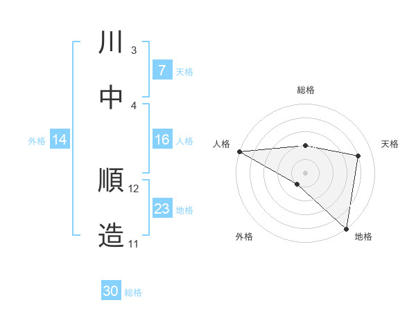 川中 順造さんの天格は7画の4点!