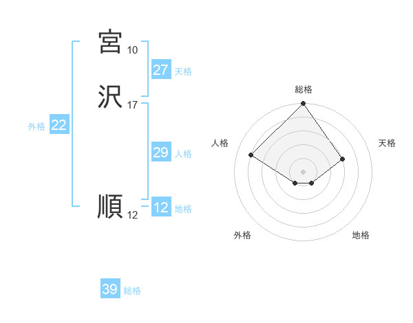 宮沢 順さんの総格は39画の5点!