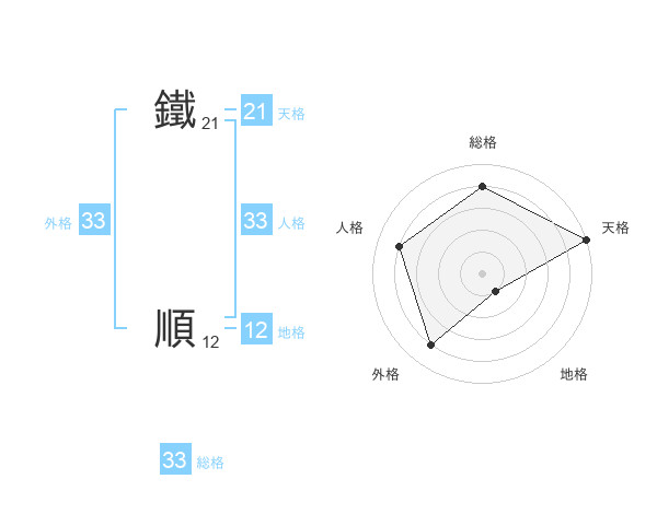鐵 順さんの外格は33画の4点!