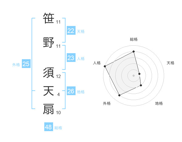 笹野 須天扇さんを姓名の画数から五運を鑑定