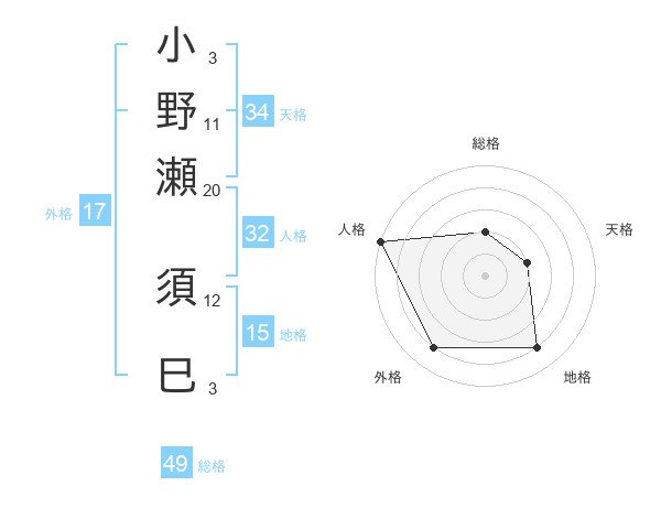 小野瀬 須巳さんを姓名の画数から五運を鑑定