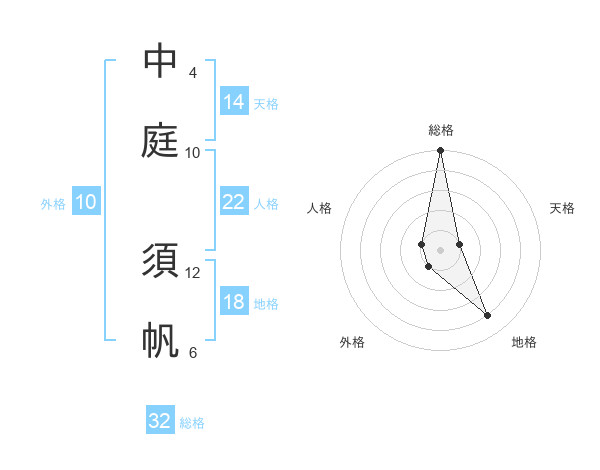中庭 須帆さんの総格は32画の5点!