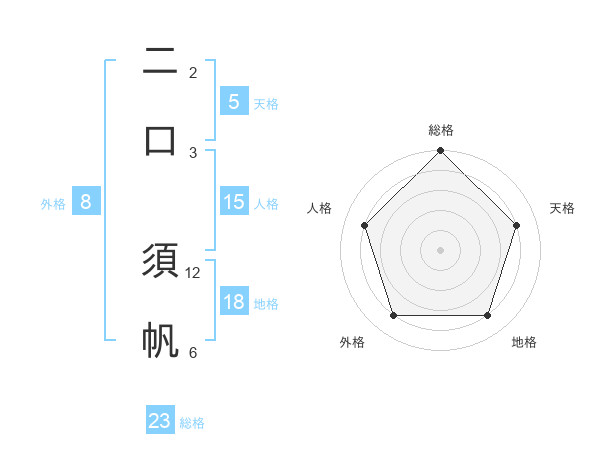 二口 須帆さんの総格は23画の5点!