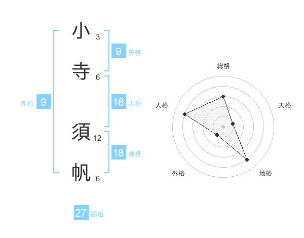 小寺 須帆さんの総格は27画の3点!