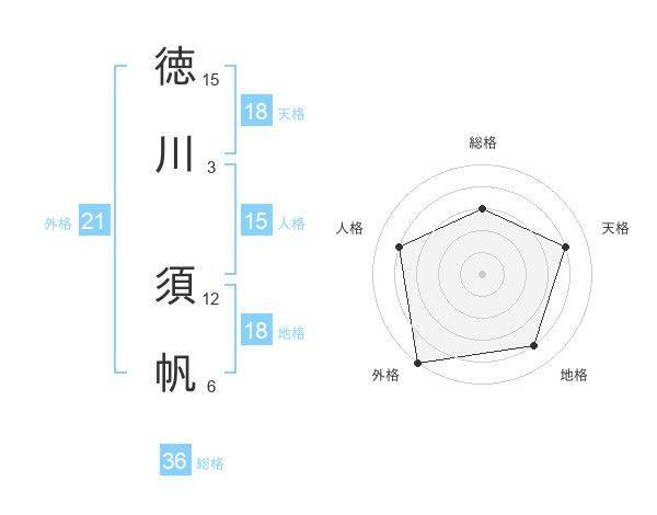 徳川 須帆さんを姓名の画数から五運を鑑定