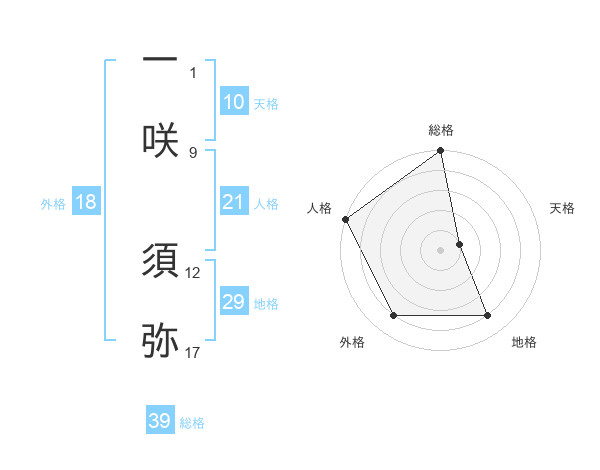 一咲 須弥さんの天格は10画の1点!