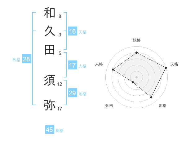 和久田 須弥さんを姓名の画数から五運を鑑定
