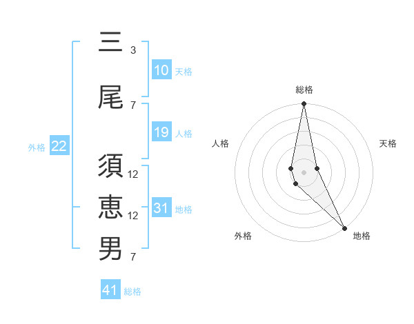 三尾 須恵男さんを姓名の画数から五運を鑑定