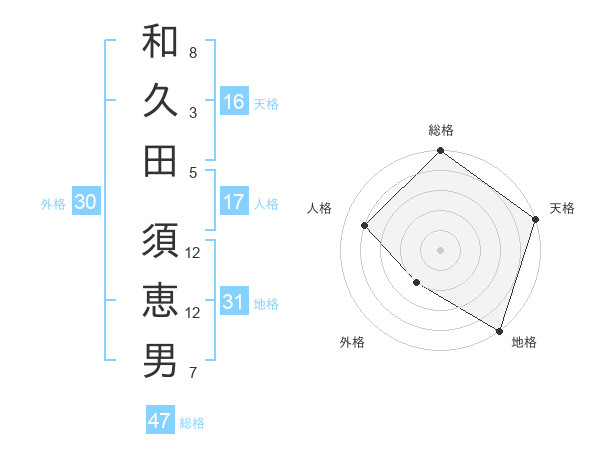 和久田 須恵男さんを姓名の画数から五運を鑑定