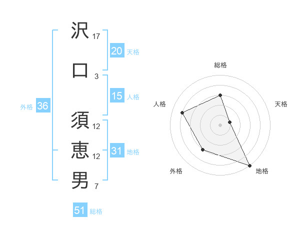 沢口 須恵男さんを姓名の画数から五運を鑑定