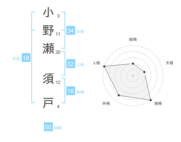 小野瀬 須戸さんの総格は50画の2点!
