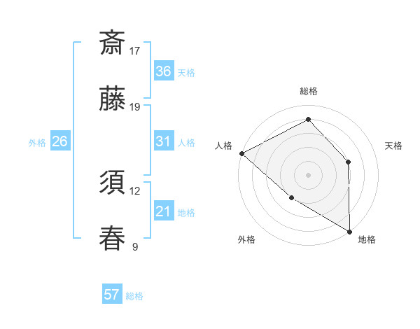斎藤 須春さんの総格は57画の4点!
