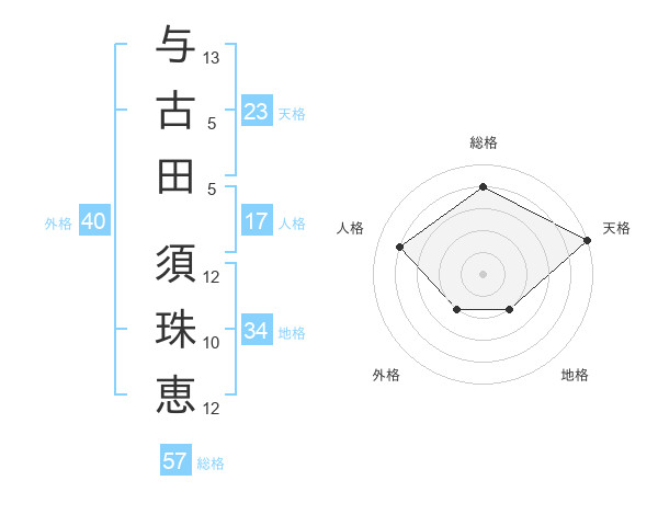 与古田 須珠恵さんを姓名の画数から五運を鑑定